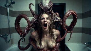 Dark alien horror in bathroom